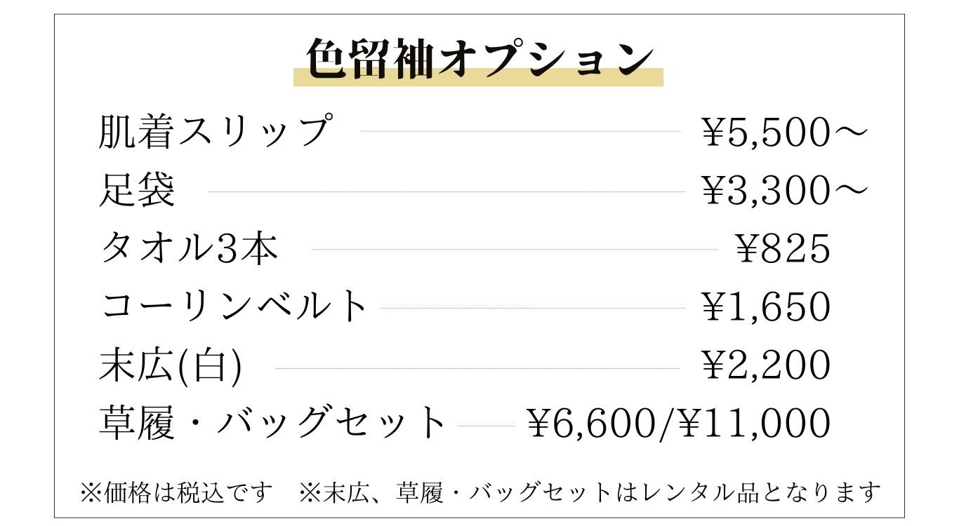 ご来店時、ご自身の肌着類をお持ちになられた方はその場でお預かりし、衣裳と一緒にお届けいたします。