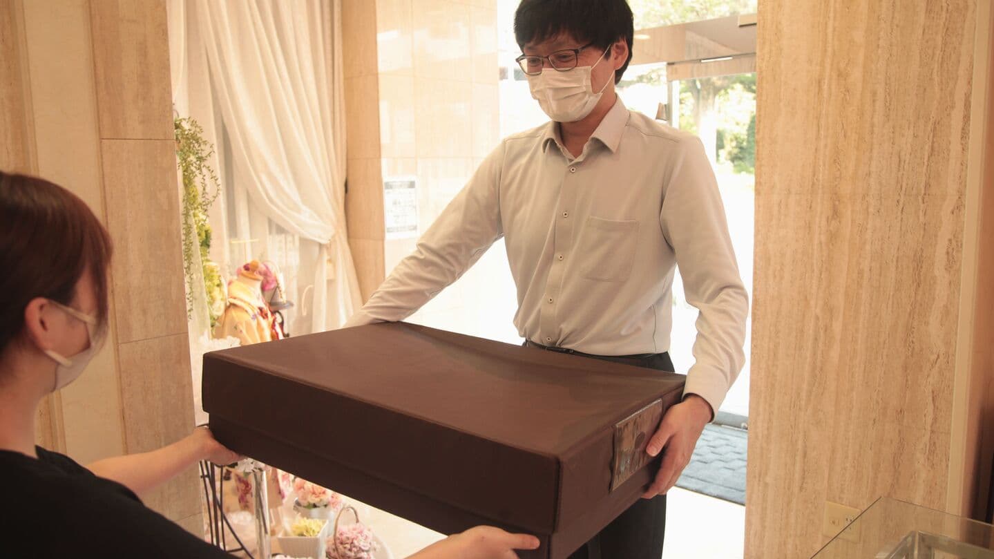衣裳をお客様ご指定の場所へ2日前にお届けし、お届け完了後にはお客様へお電話でご連絡を差し上げております。