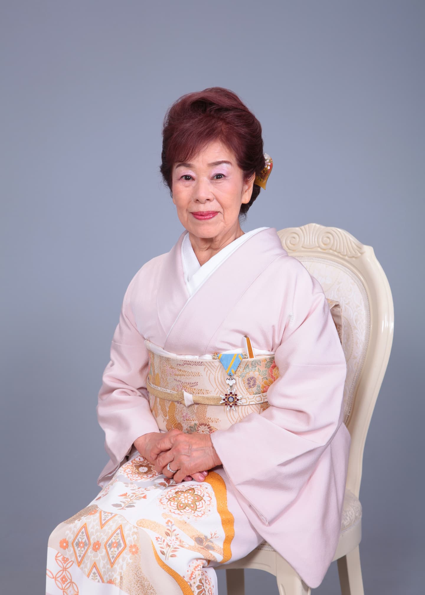 叙勲では宮中の第一礼装として用いられる色留袖を着用します。結婚式の際にお召しになる黒留袖は皇居では「喪」を連想させるとしてお召しになれません。また付下・訪問着も拝謁にはふさわしくないとされています。